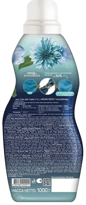 Универсальное средство, совмещающее функции геля для стирки и кондиционера для ополаскивания. Подходит для цветных и белых тканей (кроме шерсти и шёлка). Эффективно удаляет загрязнения, сохраняет яркость цветов, смягчает ткани и придаёт приятный аромат лотоса. Полностью выполаскивается, не оставляя разводов. Экономичная формула заменяет 2 кг стирального порошка и 1 л кондиционера.