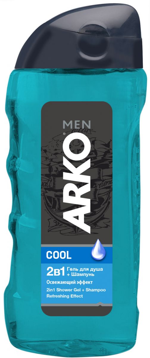 Arko Men Cool 2 в 1 для мужчин: гель для душа + шампунь "Морская свежесть". С бодрящим освежающим эффектом на целый день.
