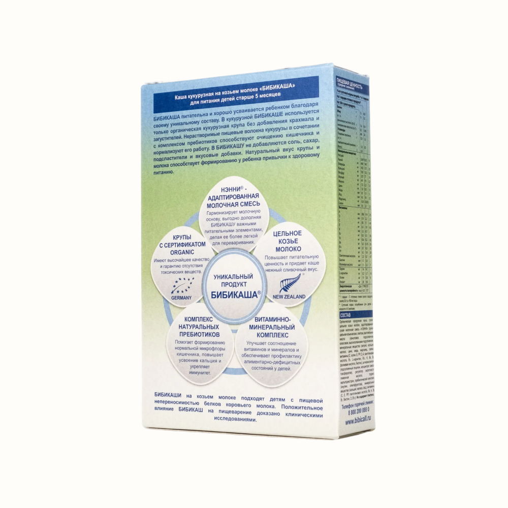 Бибикаши не содержат коровьего молока. В качестве молочной основы в них добавлены только смесь НЭННИ и сухое цельное новозеландское козье молоко. Лечебный и профилактический эффект смесей НЭННИ обусловлен природными свойствами новозеландского козьего молока, в котором практически отсутствует один из основных аллергенов коровьего молока а-s1-казеин. Эффективность смесей НЭННИ в составе гипс-аллергенной диеты для профилактики и лечения пищевой аллергии доказана клиническими исследованиями. Поэтому Бибикаши могут быть использованы в рационе детей с непереносимостью белков коровьего молока и риском развития пищевой аллергии.