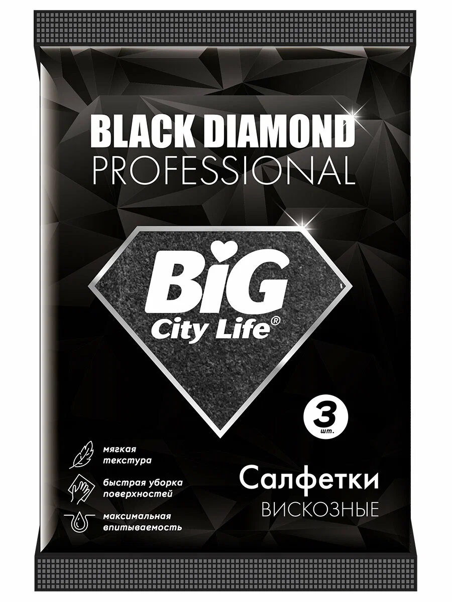 Салфетки из микрофибры BIG City Black Diamond — профессиональное решение для эффективной уборки без разводов и ворса.