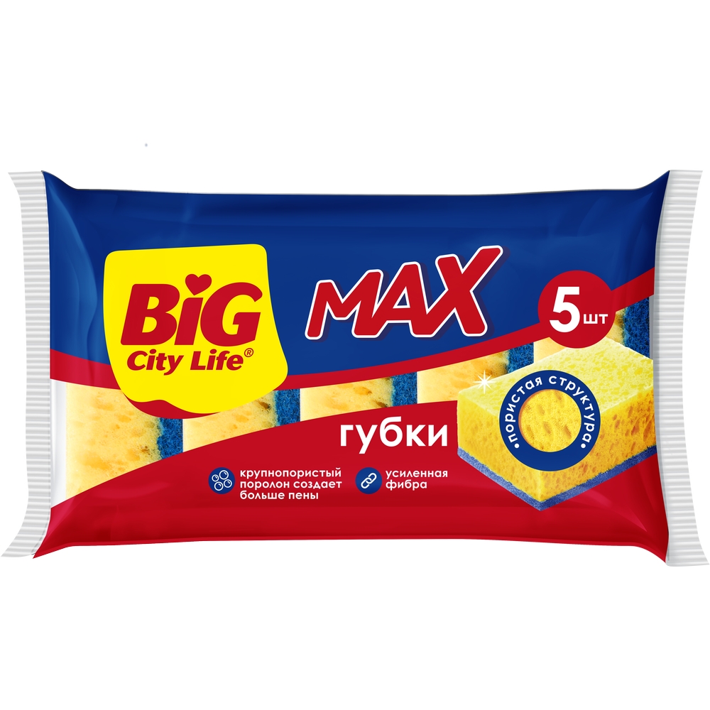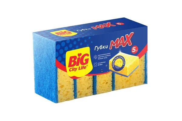 Кухонные губки BIG City MAX с крупнопористой структурой — надёжный помощник для эффективной очистки посуды и кухонных поверхностей.