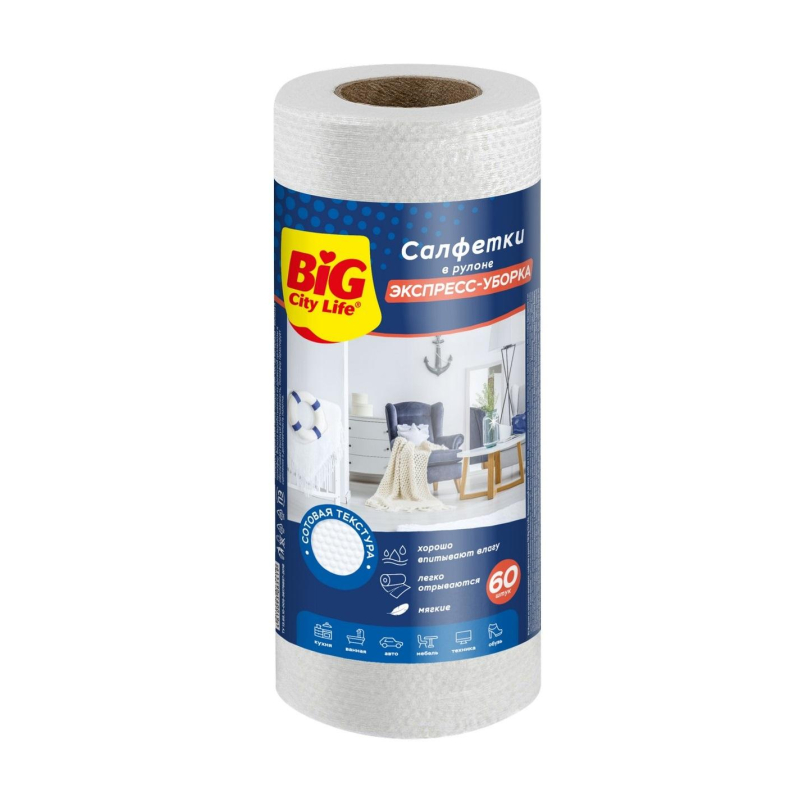 Вискозные салфетки BIG City в рулоне — практичный выбор для быстрой и эффективной уборки дома, на кухне, в ванной комнате и в офисе.
