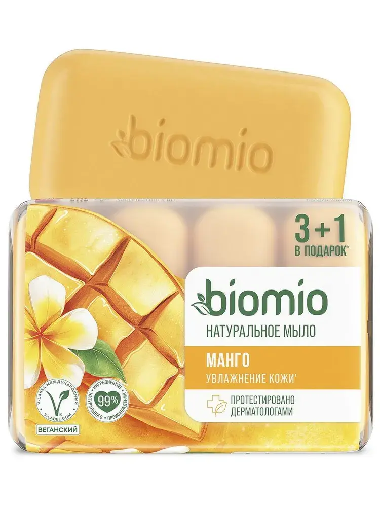Мыло BioMio с баттером манго на 99 % состоит из натуральных компонентов. Мягко очищает кожу, не вызывая ощущения стянутости. Баттер манго интенсивно увлажняет и помогает восстановить защитный барьер кожи. Эфирное масло апельсина дарит приятный аромат и поднимает настроение. Ионы серебра обеспечивают лёгкий антибактериальный эффект. Продукт гипоаллергенный, протестирован дерматологами.