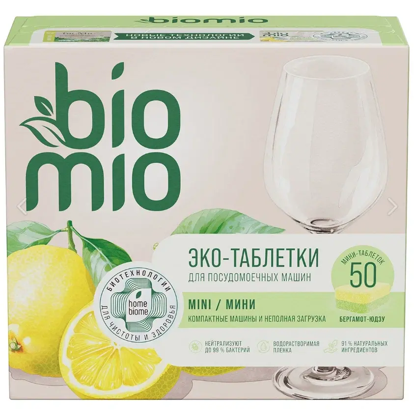 Экологичные быстрорастворимые таблетки BioMio BIO‑TABS с эфирными маслами бергамота и юдзу — средство для мытья посуды в посудомоечных машинах. На 91 % состоят из натуральных компонентов. Эффективно удаляют загрязнения, нейтрализуют запахи и обеспечивают гигиеническую чистоту. Подходят для детской посуды и бутылочек. Биоразлагаемы, безопасны для септических систем.
