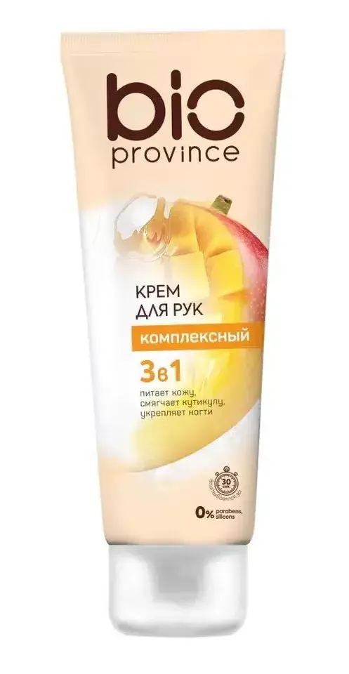 Крем для рук BIOPROVINCE «Комплексный 3 в 1» (75 мл) — многофункциональное средство для интенсивного ухода за кожей рук и ногтями. Сочетает три действия в одном продукте: питание и увлажнение кожи, восстановлениееё эластичности, укрепление ногтевой пластины.