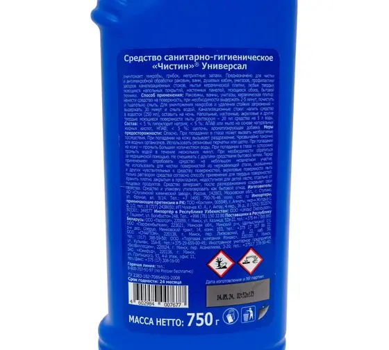 Вода, 5–15 % АПАВ, щавелевая кислота, < 5 % загуститель, ингибитор коррозии, краситель, ароматизирующая добавка.