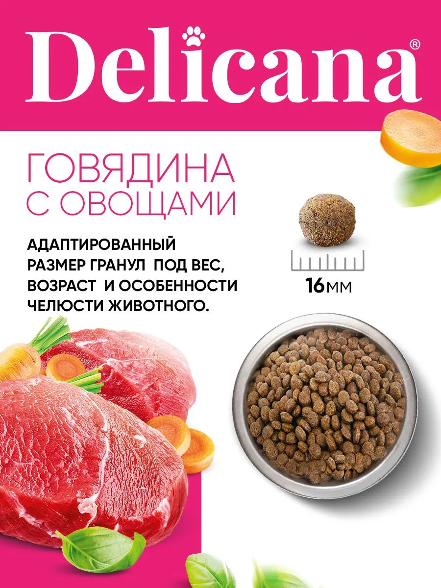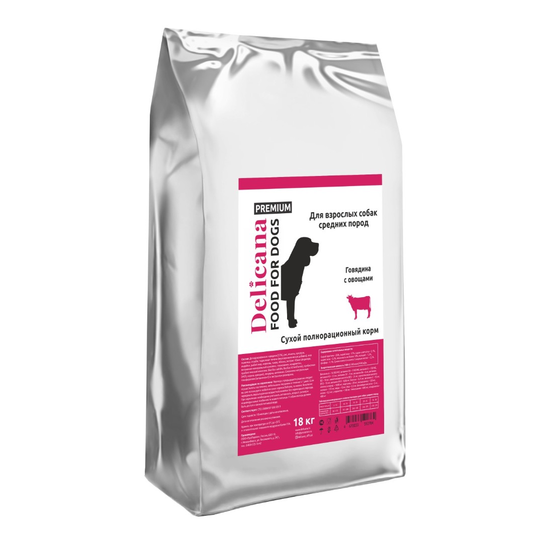Полнорационный сухой корм премиум‑класса DELICANA для взрослых собак средних пород (весом 10–25 кг) от 1 года.