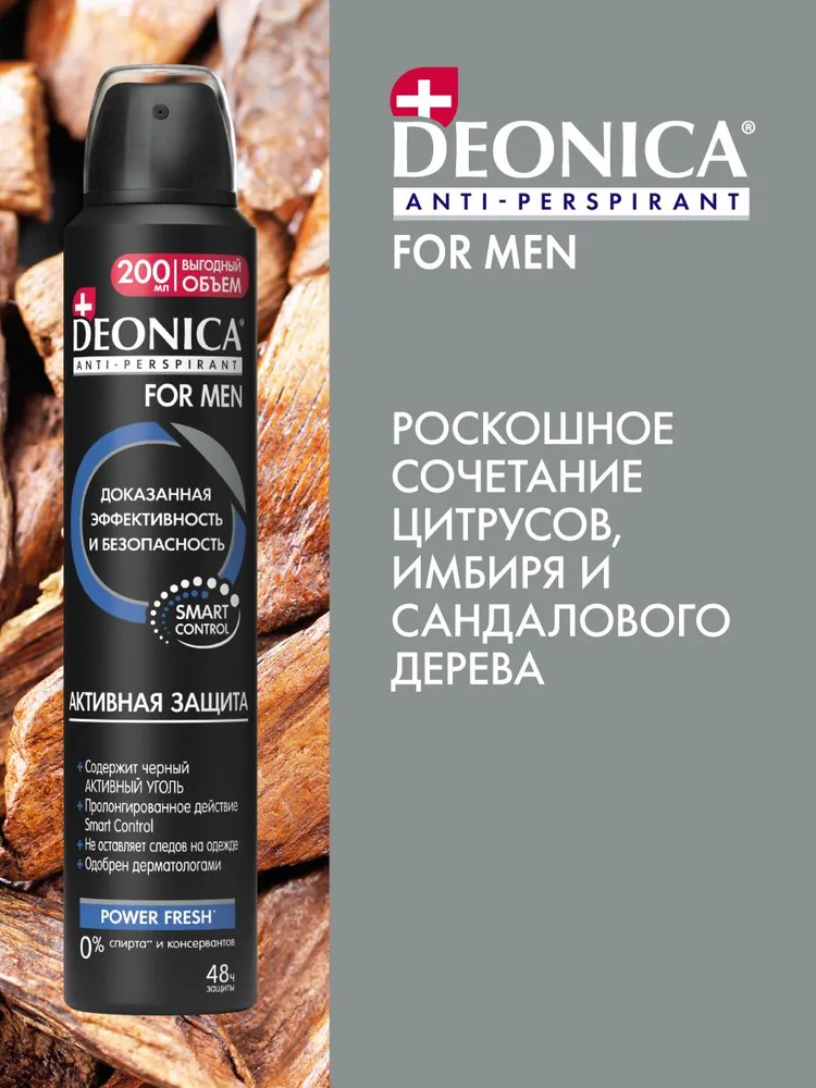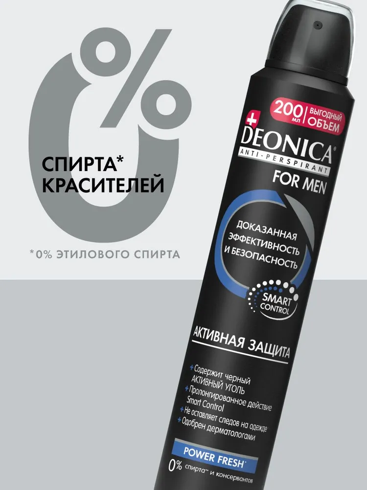 Мужской антиперспирант‑спрей с усиленной формулой для надёжной защиты от пота и неприятного запаха в условиях повышенной активности.