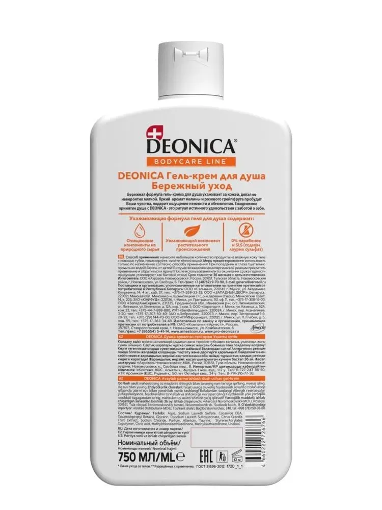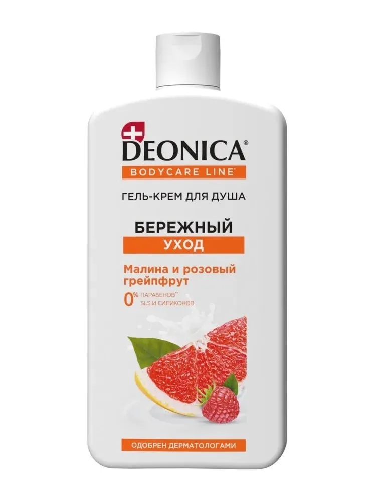 Гель‑крем для душа DEONICA «Бережный уход» сочетает деликатное очищение и интенсивное увлажнение.