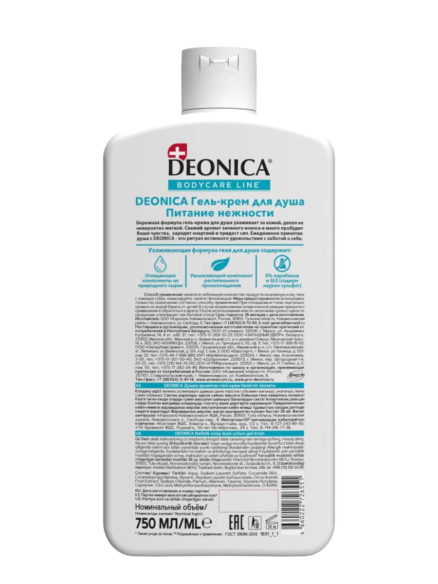 Гель‑крем для душа «Питание нежности» от DEONICA — нежное очищающее средство с насыщенной текстурой,