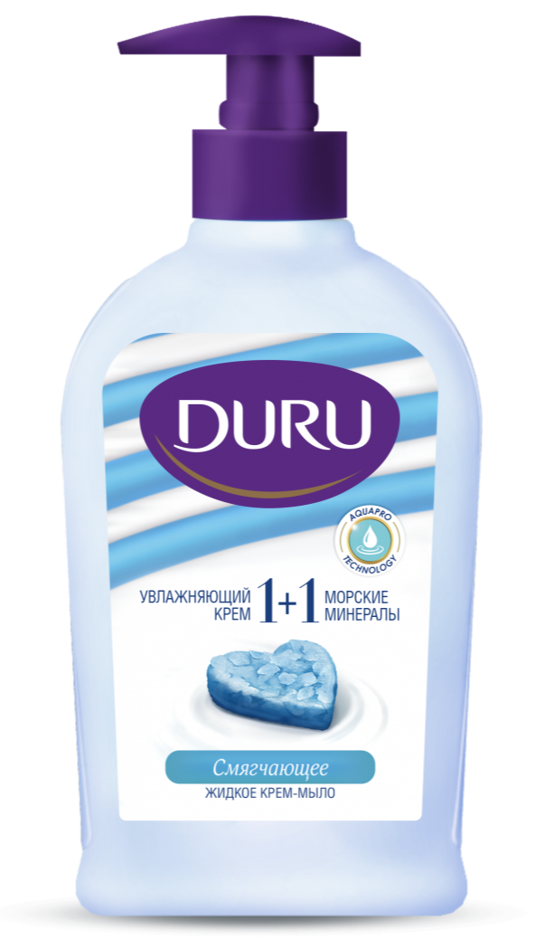 Жидкое крем-мыло DURU 1+1 Морские минералы имеет очень мягкую увлажняющую текстуру и приятный морской аромат для Ваших рук.