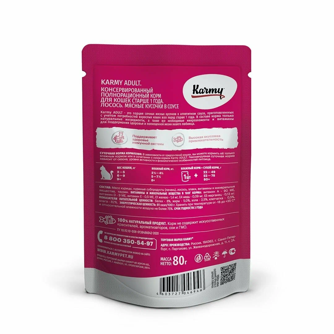 КАРМИ — полнорационный влажный корм в формате паучей для взрослых кошек старше 1 года.