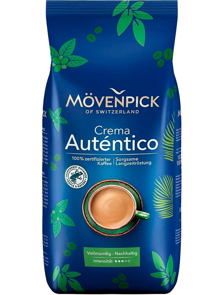 MÖVENPICK El Autentico — премиальный кофе в зёрнах, созданный для истинных ценителей мягкого, но насыщенного вкуса. Это купаж лучших сортов арабики и, возможно, с добавлением контролируемой робусты, выращенных на плантациях с сертификацией Rainforest Alliance.