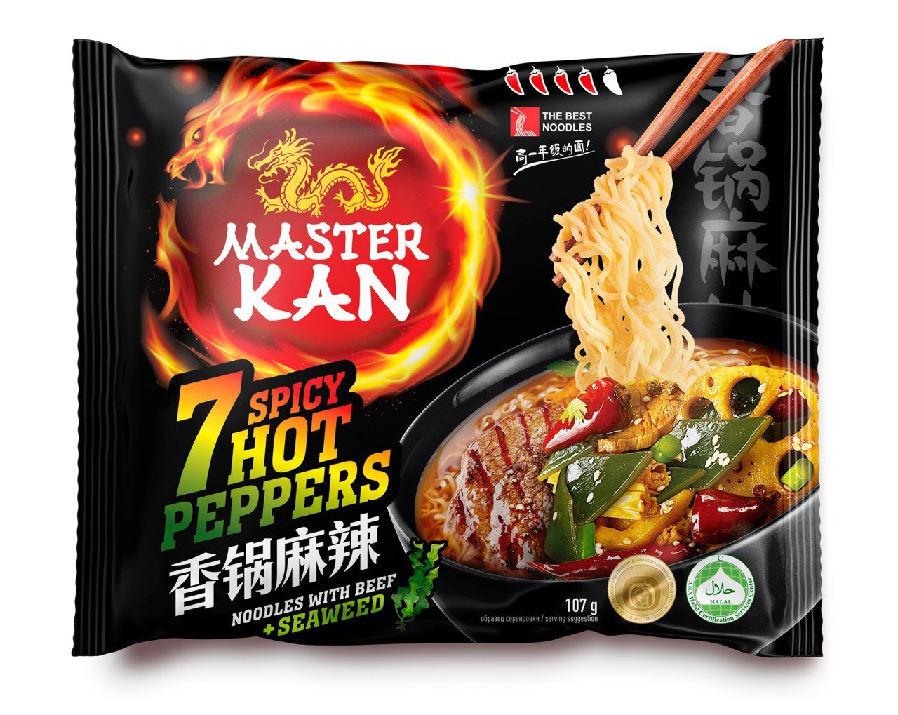 Лапша быстрого приготовления Master Kan «7 Перцев с морской капустой» (107 г) — пикантное блюдо с оригинальной комбинацией острой перцовой композиции и нежного морского компонента. В составе: сухая лапша, суповая основа с семью видами перца и сушёной морской капустой, а также масляный соус для сбалансированного вкуса. После заваривания лапша сохраняет упругую текстуру, а сочетание жгучих перцев и морской капусты создаёт необычное, но гармоничное вкусовое сочетание. Подходит для любителей острых блюд и новых гастрономических экспериментов. Приготовление занимает 3 минуты: достаточно залить кипятком, добавить приправы и перемешать.