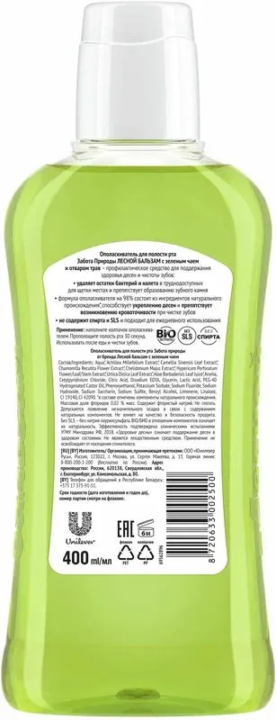 Ополаскиватель «ЛЕСНОЙ БАЛЬЗАМ» с экстрактом зелёного чая — средство для комплексного ухода за полостью рта.