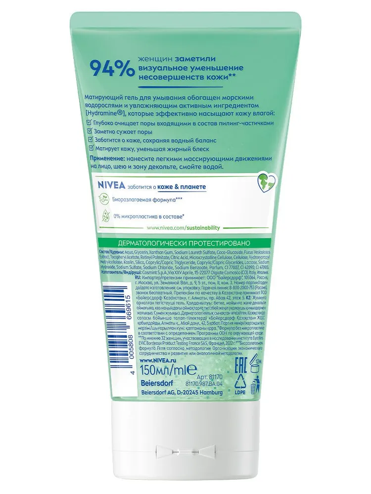 Гель для умывания эффективно удаляет повседневные загрязнения, косметику и жир. Не сушит кожу, поддерживая естественный уровень увлажнённости.