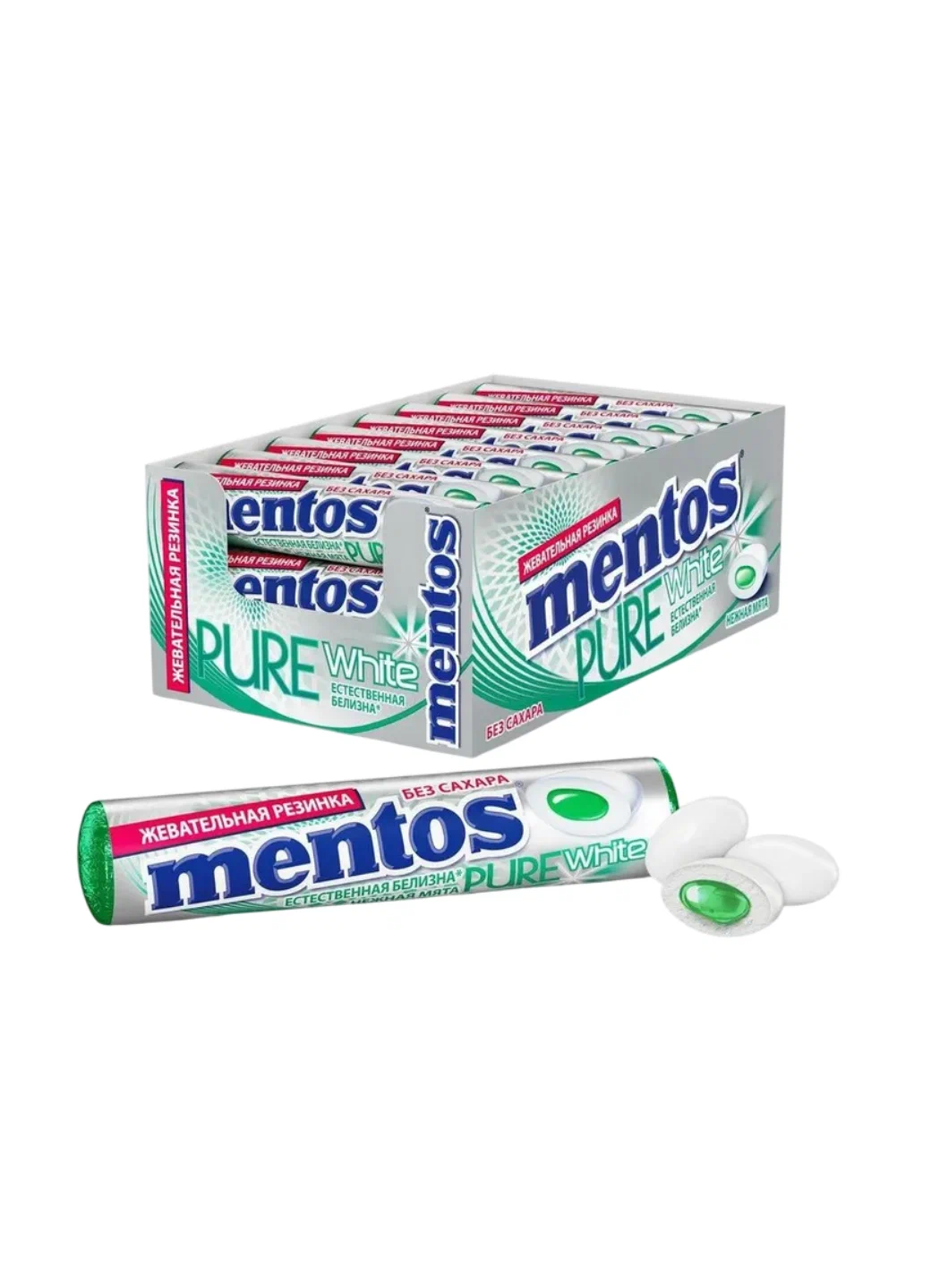 Жевательные конфеты Mentos со вкусом «Нежная мята» — освежающее лакомство с мягким, сбалансированным мятным ароматом и эластичной текстурой.