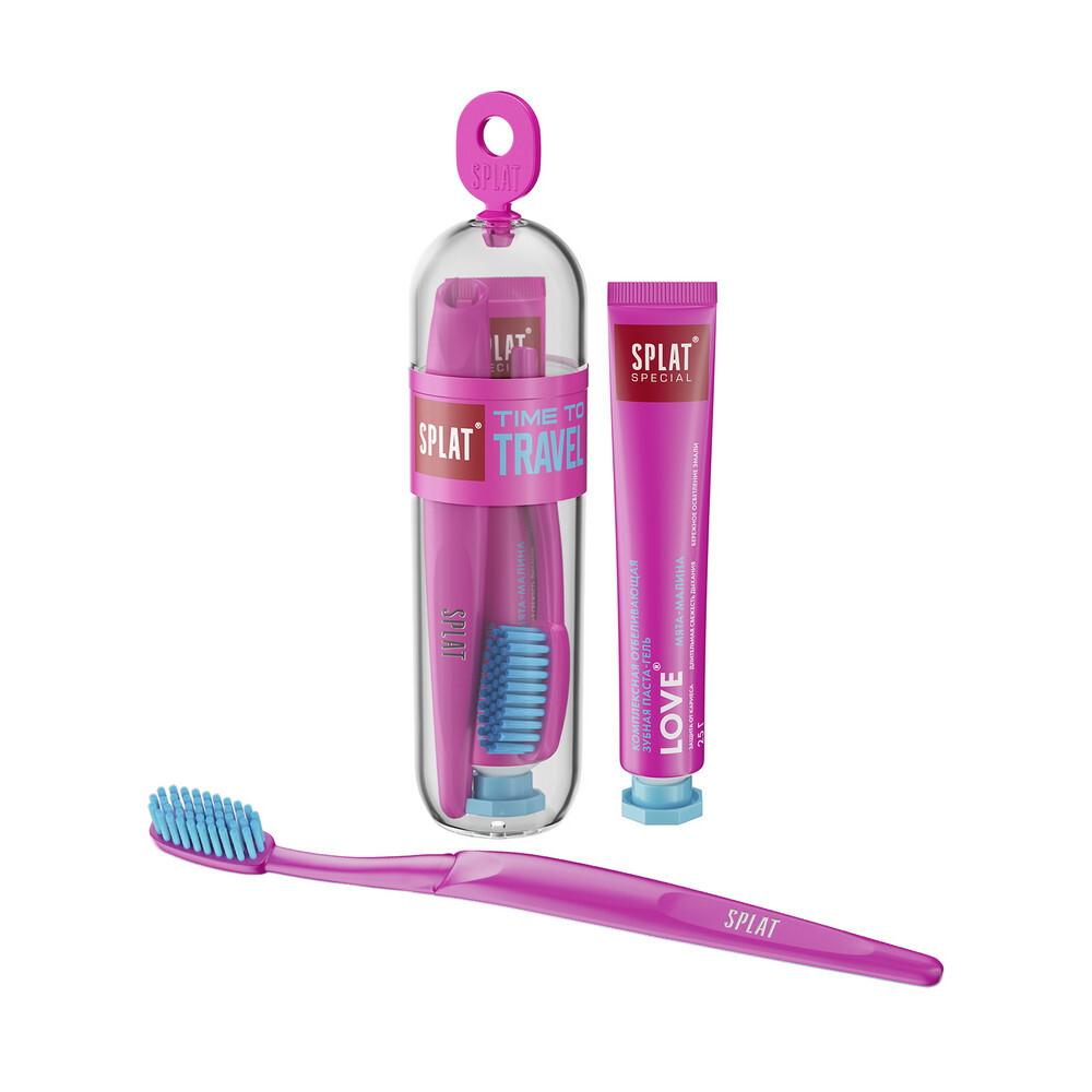 Компактный дорожный набор SPLAT «Love/Любовь» объединяет инновационную зубную пасту и эргономичную щётку — идеальное решение для поддержания гигиены полости рта в поездках и путешествиях. Паста обеспечивает комплексный уход: отбеливает, укрепляет эмаль и защищает дёсны. Щётка с мягкой щетиной и удобной ручкой гарантирует комфортное очищение даже в дороге.