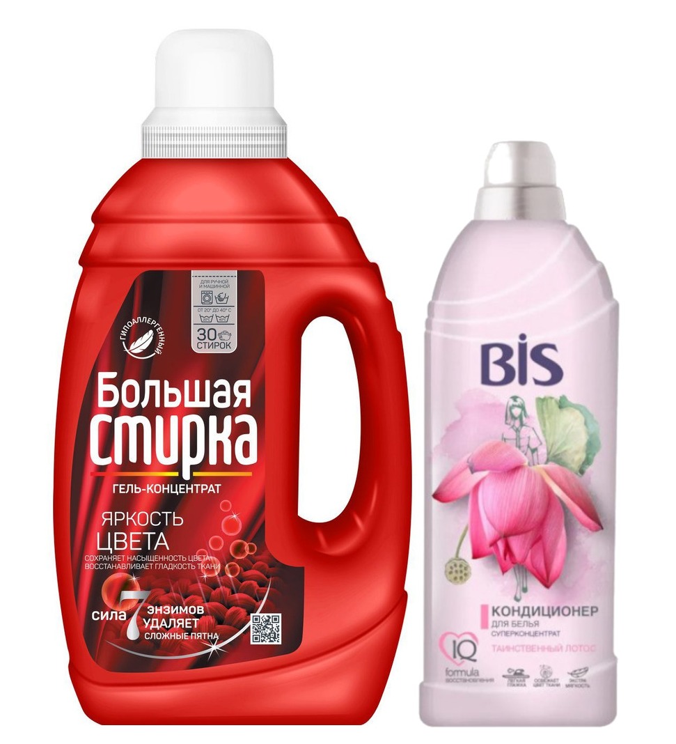- «Большая стирка» Color (1,2 л) — концентрированный гель для стирки