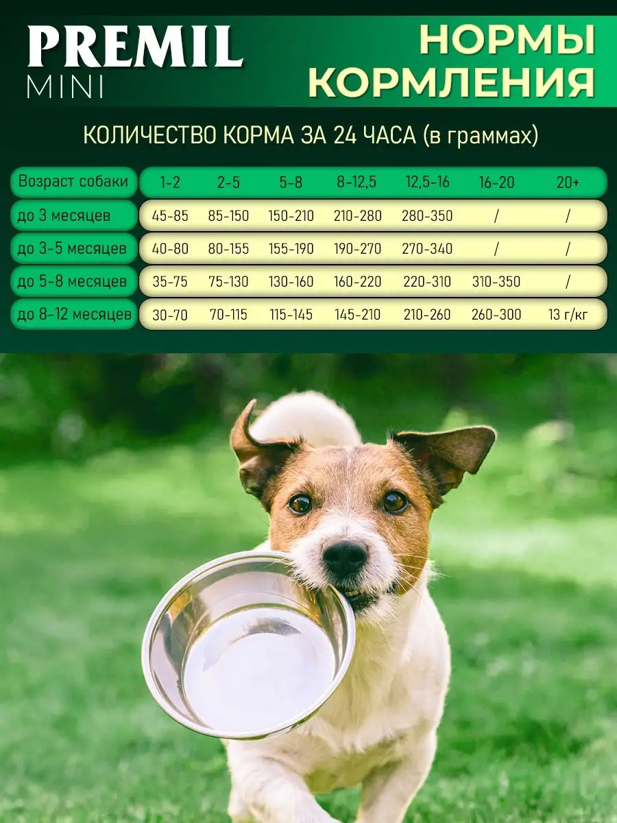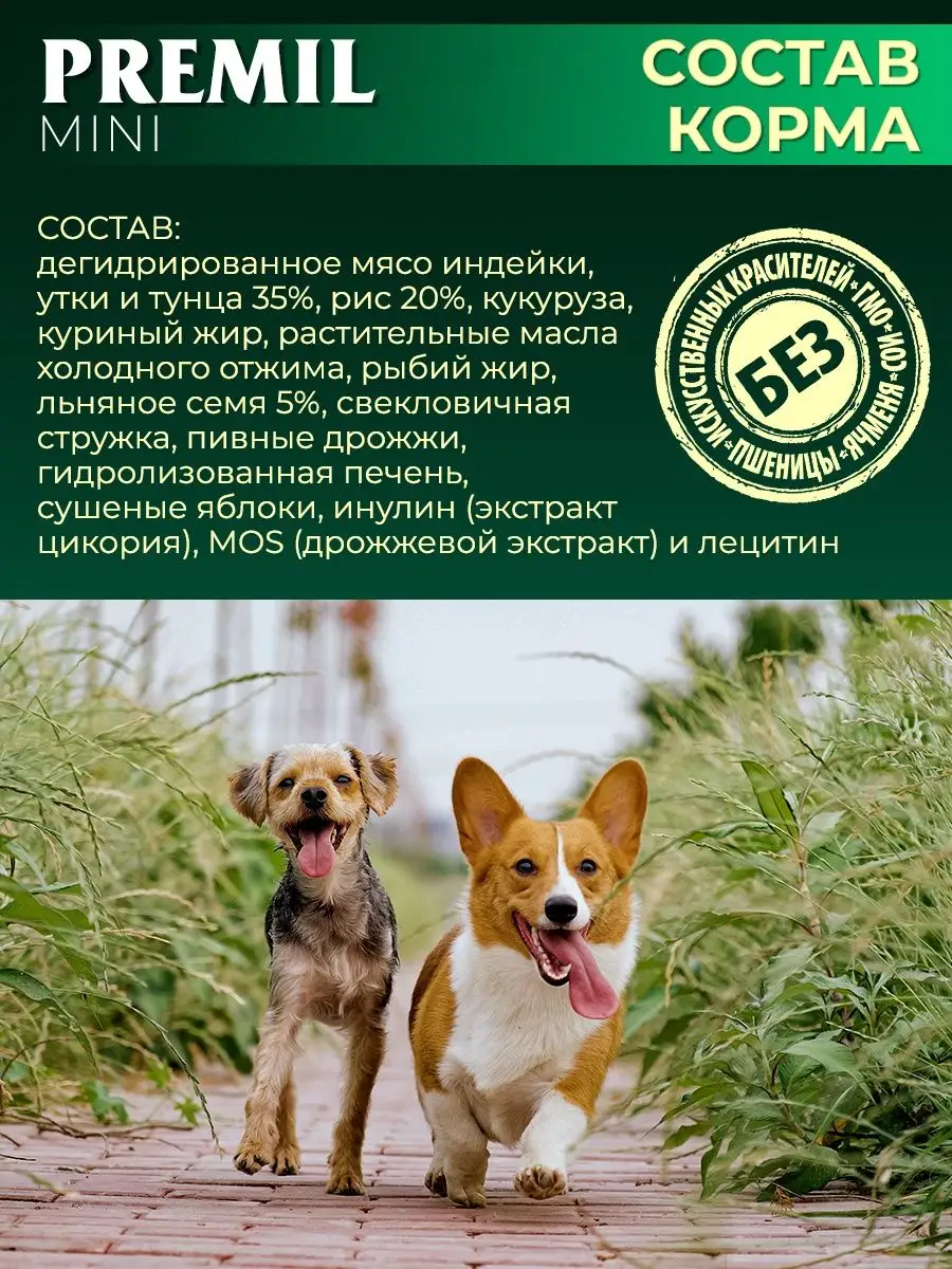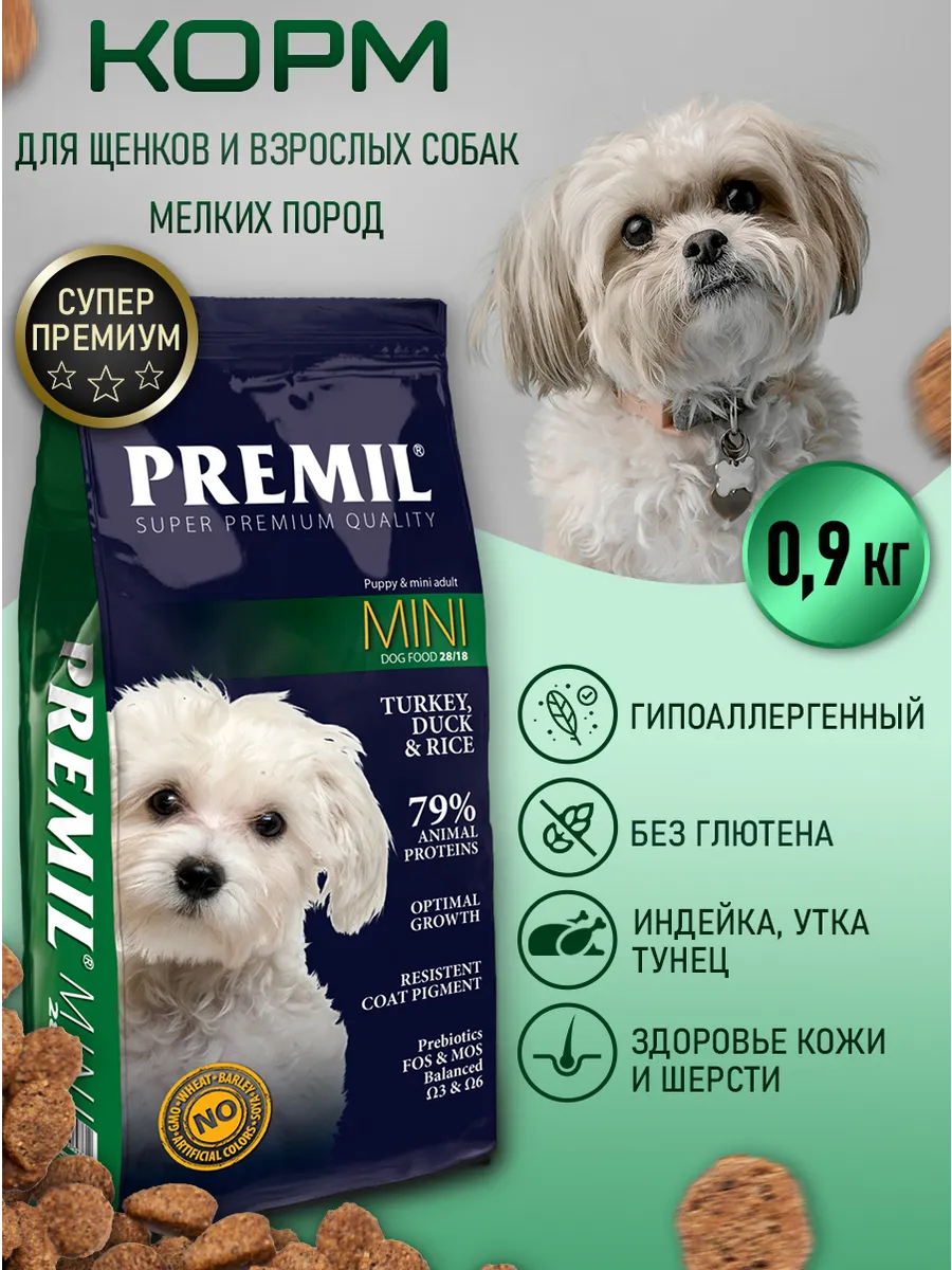 Premil Mini — полнорационный сухой корм премиум‑класса для взрослых собак мелких пород (весом до 10 кг).