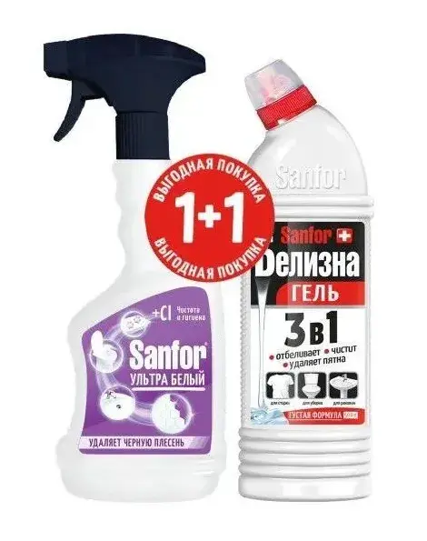 Sanfor набор: спрей Универсал Ультра Белый 500мл + Белизна гель, 500 мл, блок 6шт., Санфор