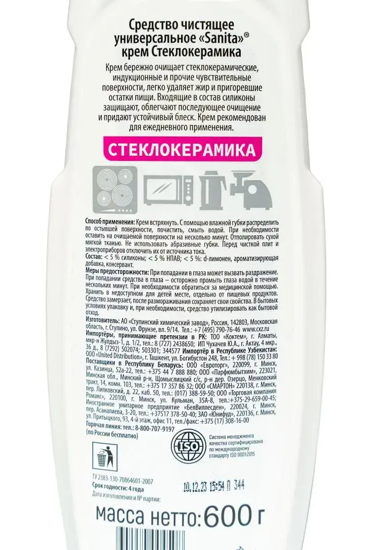 Специализированный крем для бережной очистки стеклокерамических и чувствительных поверхностей. Эффективно удаляет пригоревший жир, налёт и другие загрязнения, не оставляя разводов и царапин. Благодаря густой консистенции экономично расходуется и обеспечивает длительное контактное воздействие. Подходит для ежедневного применения.