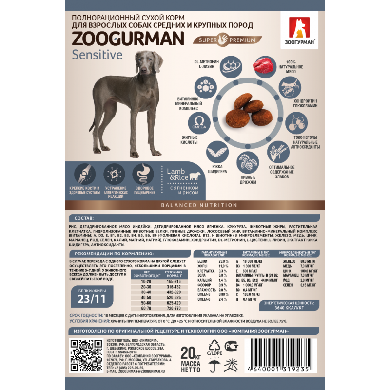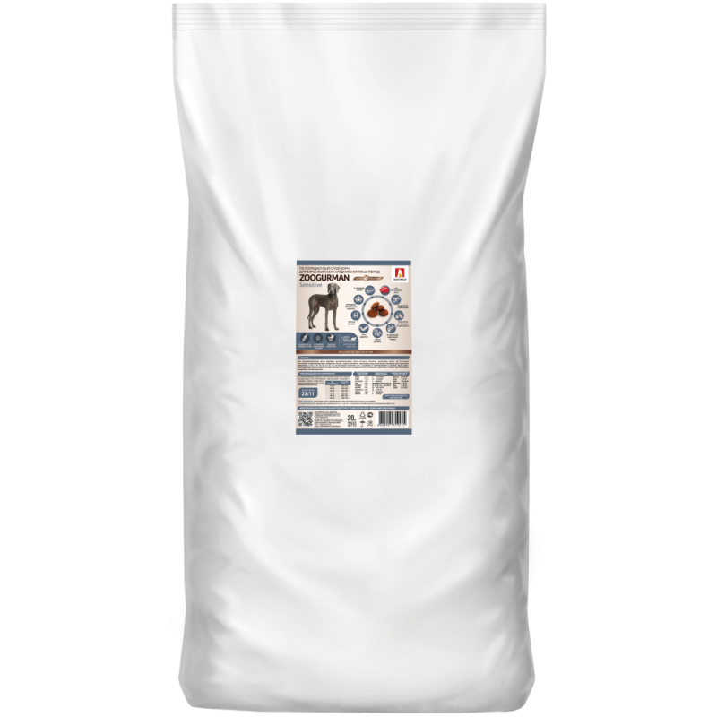 Упаковка 20 кг оптимальна для регулярного кормления собак с особыми потребностями в питании.