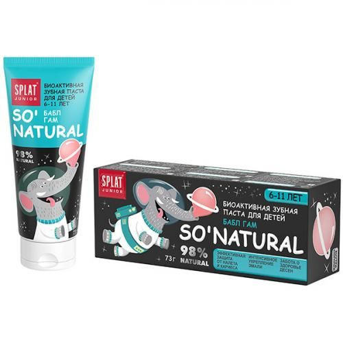 Содержит фтор (500 ppm), укрепляет эмаль, защищает от кариеса, мягко удаляет налёт, не содержит SLS/SLES/парабенов/синтетических красителей/ ментола, имеет приятный вкус «Бабл‑гам», подходит для детей 6–11 лет, клинически протестирована, безопасна при проглатывании (в малых количествах), облегчает приучение к гигиене полости рта, поддерживает pH‑баланс, придаёт свежесть дыханию.