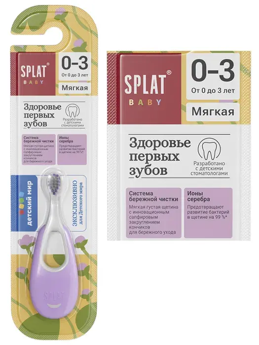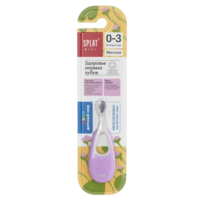 Детская зубная щётка SPLAT «Baby» разработана для бережного ухода за первыми зубками и нежными дёснами малыша. Благодаря инновационным решениям обеспечивает безопасную и эффективную гигиену полости рта с самого раннего возраста. Может также использоваться как грызунок‑прорезыватель, облегчая дискомфорт при прорезывании зубов.